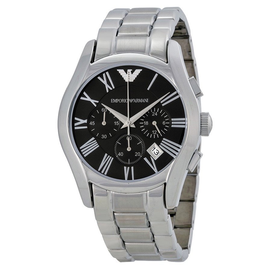 This quintessential watch has sleek lines for a polished style. It has a black dial encased in stainless steel with Roman numeral hour markers, and within the main dial is a small dial with a second hand for added functionality. A stainless steel strap completes the timeless look. The Armani AR0680 is not just an attractive accessory; it is also water resistant to a depth of 50 meters.
